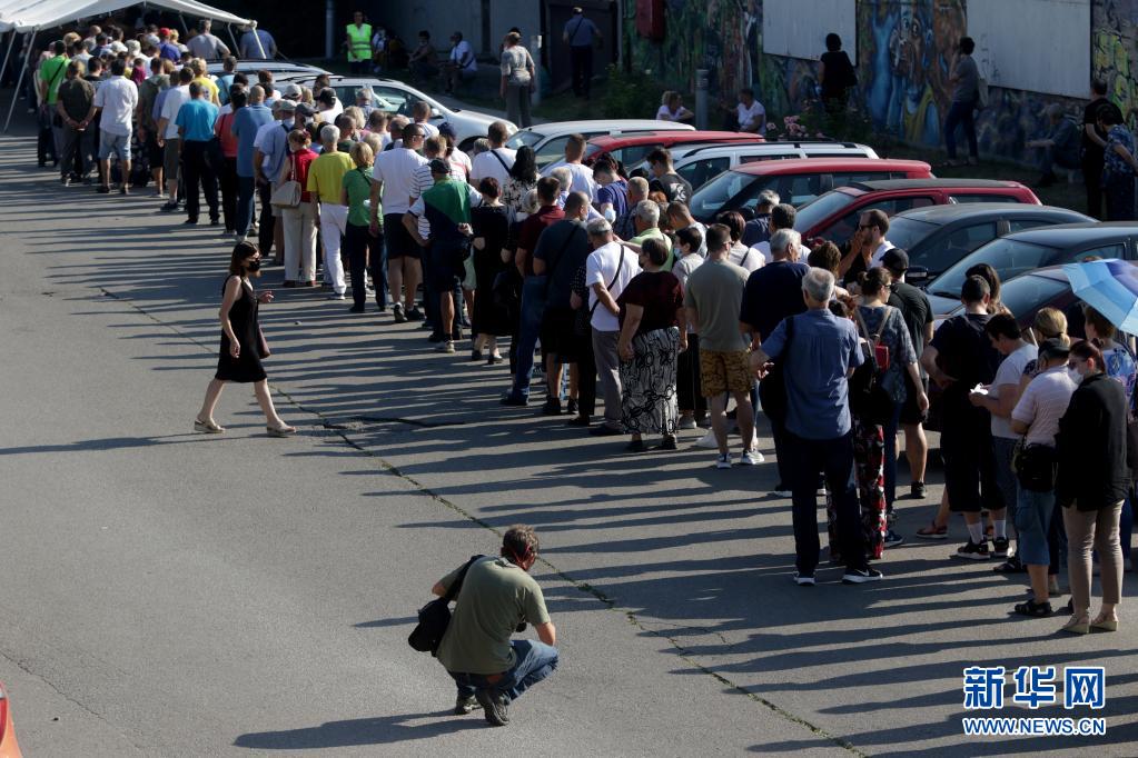 7月31日,在波黑萨拉热窝,人们在新冠疫苗接种中心排队等待接种疫苗。