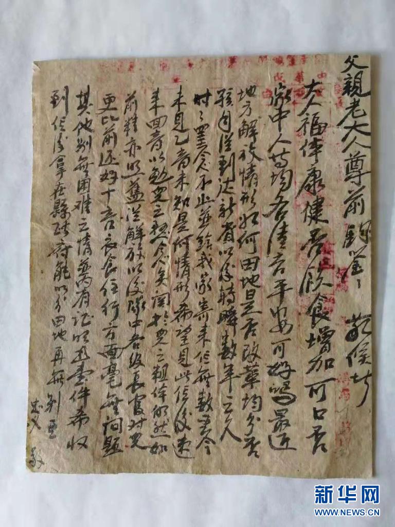 先遣连烈士陈忠义的家书。