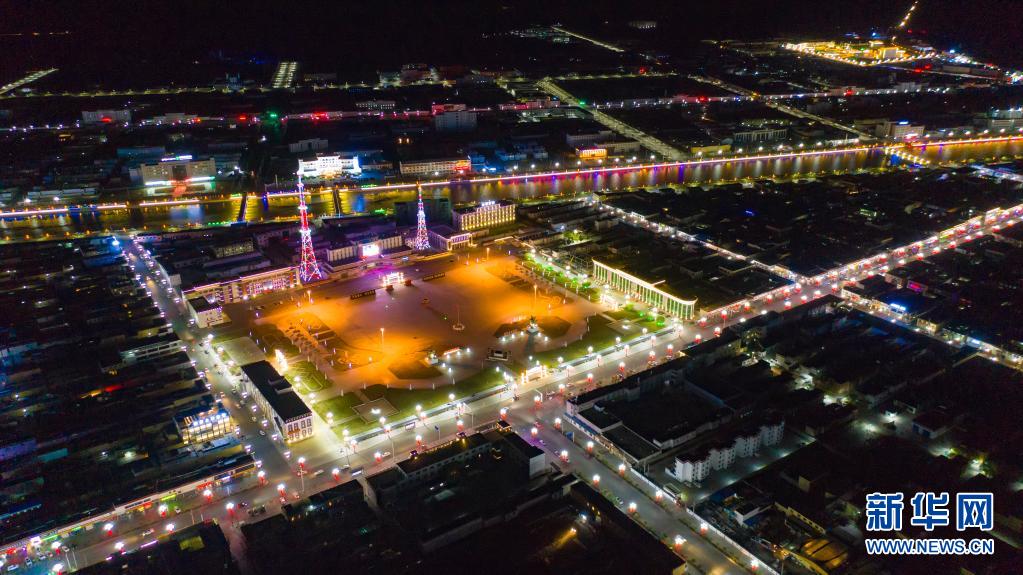 阿里狮泉河镇夜景(2018年10月3日摄,无人机照片)。