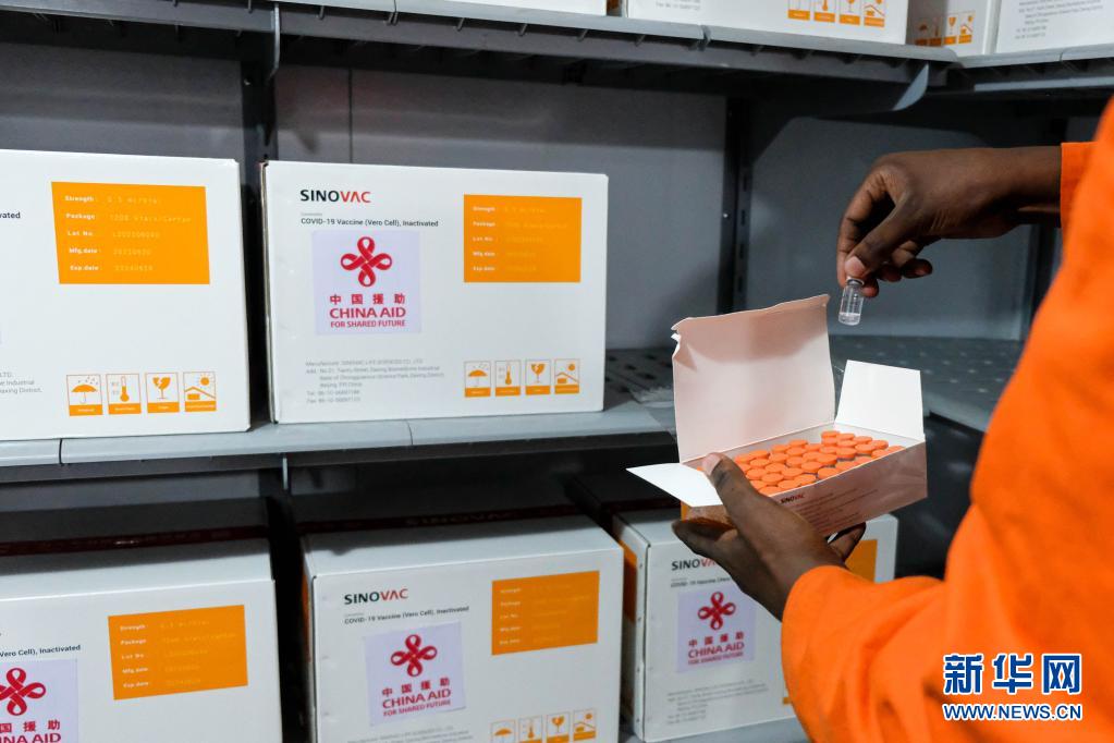 这是7月31日在乌干达恩德培拍摄的中国政府援助的新冠疫苗。