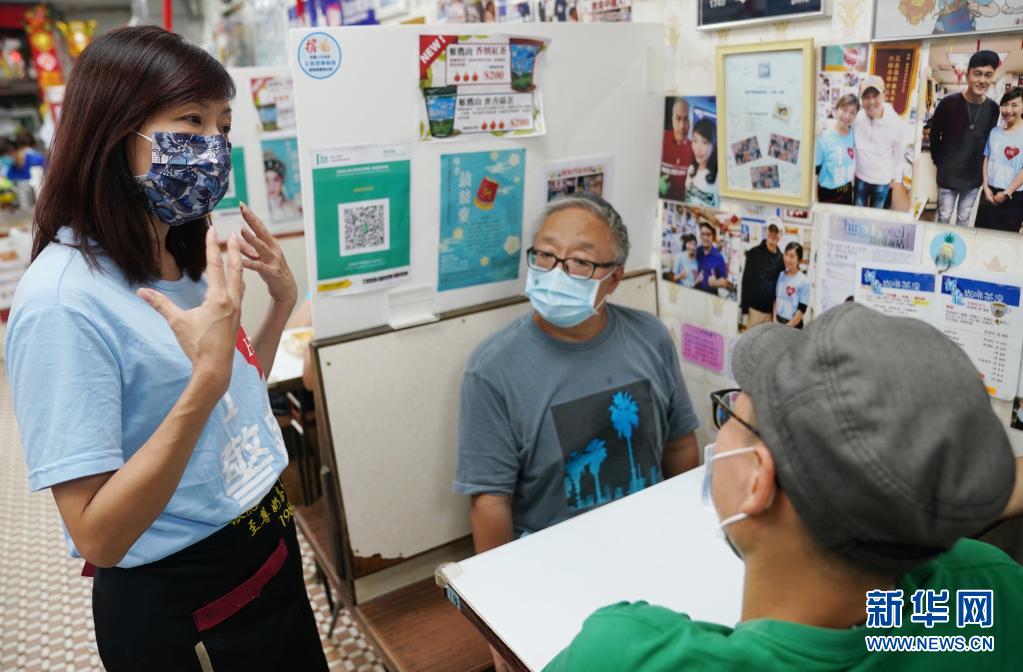在香港鲤鱼门“银龙咖啡茶座”餐厅,女老板李凯瑚(左)在和店内食客聊天(7月26日摄)。