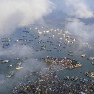 8月1日,浙江省舟山市大批渔船从沈家门渔港开赴东海海域进行捕捞作业(无人机照片)。