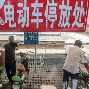 8月1日,在河北省遵化市一住宅小区,业主将电动车停放在集中停放处。