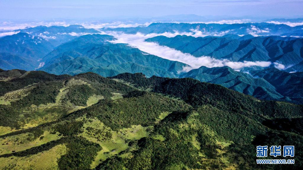 雨后初霁,位于陕西省汉中市留坝县的紫柏山国家森林公园内云雾升腾,宛如画境(2020年9月17日摄,无人机照片)。