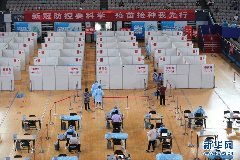 8月2日,市民在南京市鼓楼区五台山体育中心新冠疫苗集中接种点登记,准备接种疫苗。