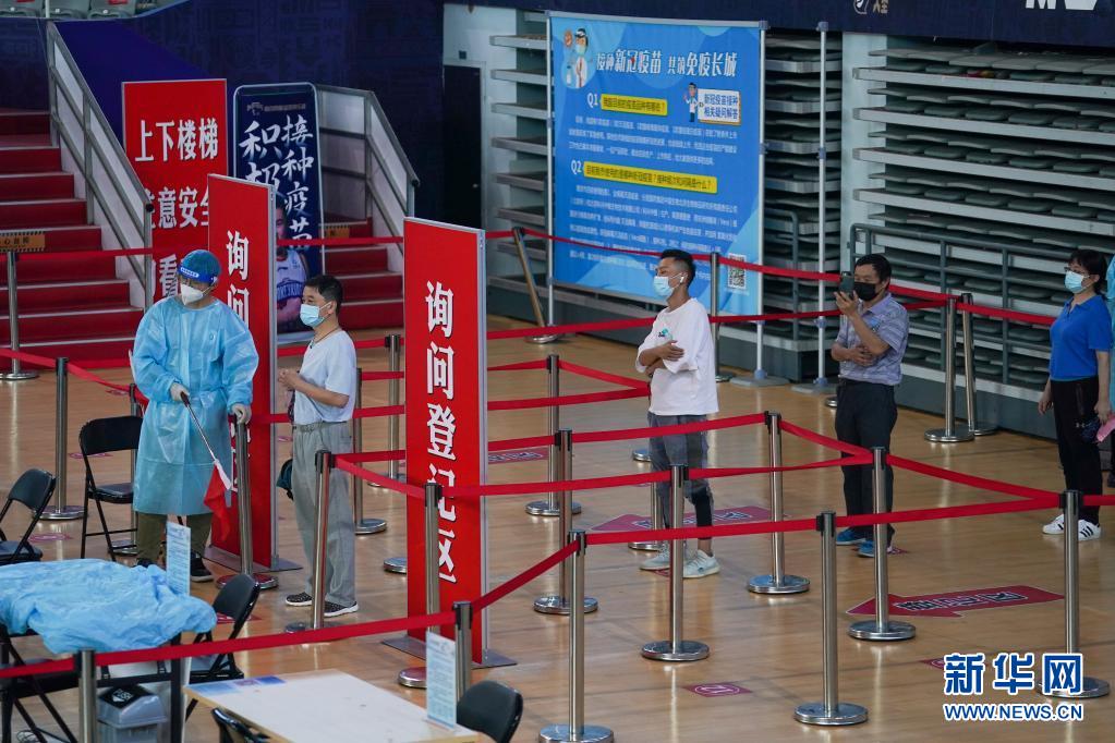 8月2日,市民在南京市鼓楼区五台山体育中心新冠病毒疫苗集中接种点排队,准备接种疫苗。