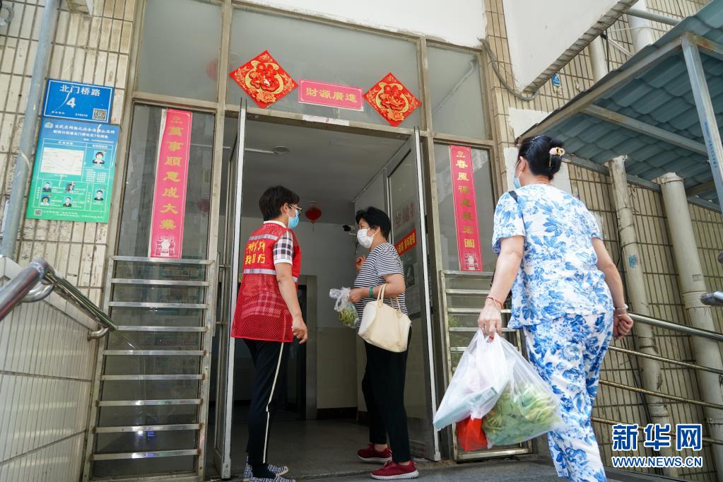 黄滢(左)在辖区内一处小区走访(7月30日摄)。新华社记者 李博 摄