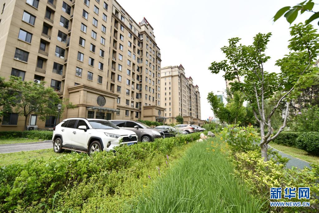 这是迁安市君和领秀湾小区内的下沉式绿地(8月1日摄)。
