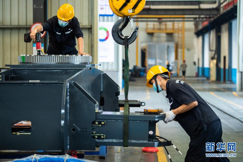 8月3日,工人在位于宁乡市的湖南星邦智能装备股份有限公司生产车间内作业。