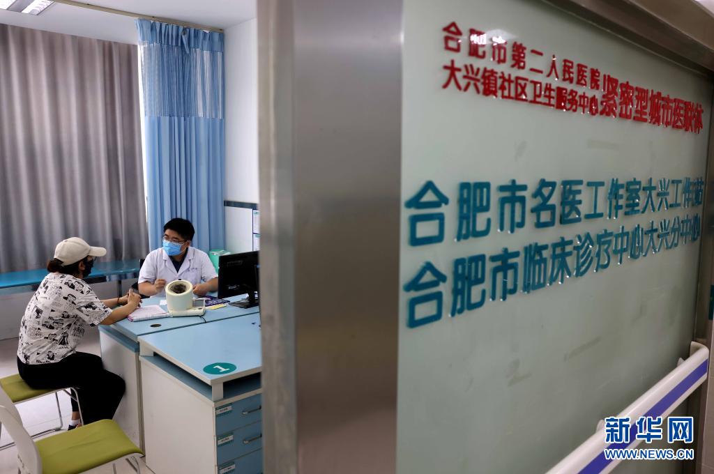8月3日,在合肥市瑶海区大兴镇社区卫生服务中心的名医工作室,合肥市第二人民医院的医生为患者进行诊疗。