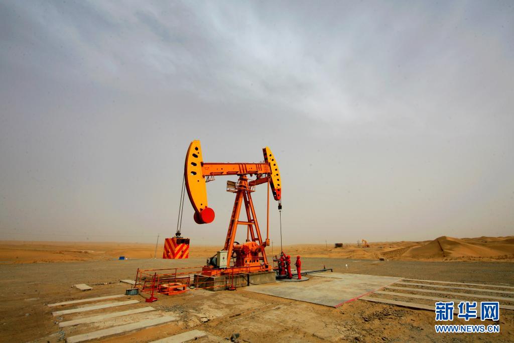 塔里木油田工作人员在读取抽油机参数(2021年3月摄)。