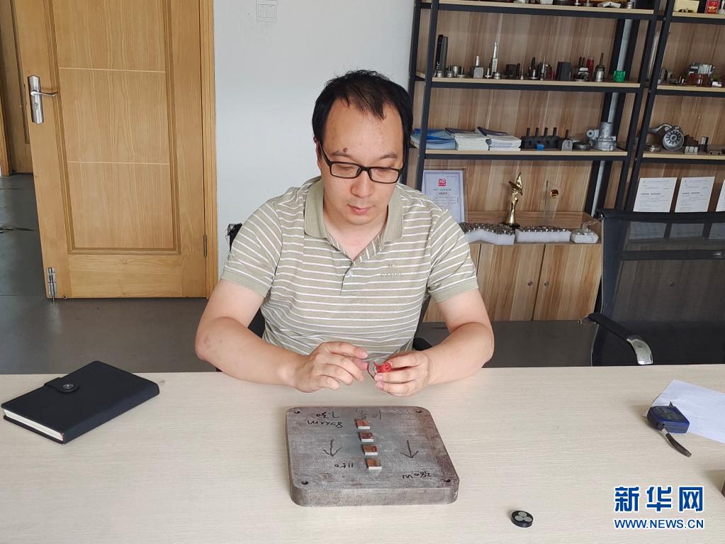 8月2日,在浙江省宁波市北仑区宁波经济技术开发区科技创业园,匠心快速成型技术有限公司总经理钱滨在查看样品质量。