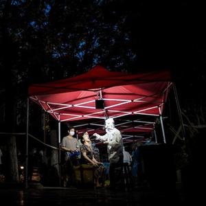 8月3日,市民在武汉市东西湖区联通佳苑小区检测点进行核酸检测。