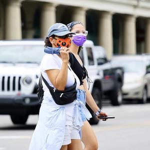 8月3日,人们在美国路易斯安那州新奥尔良市戴着口罩出行。