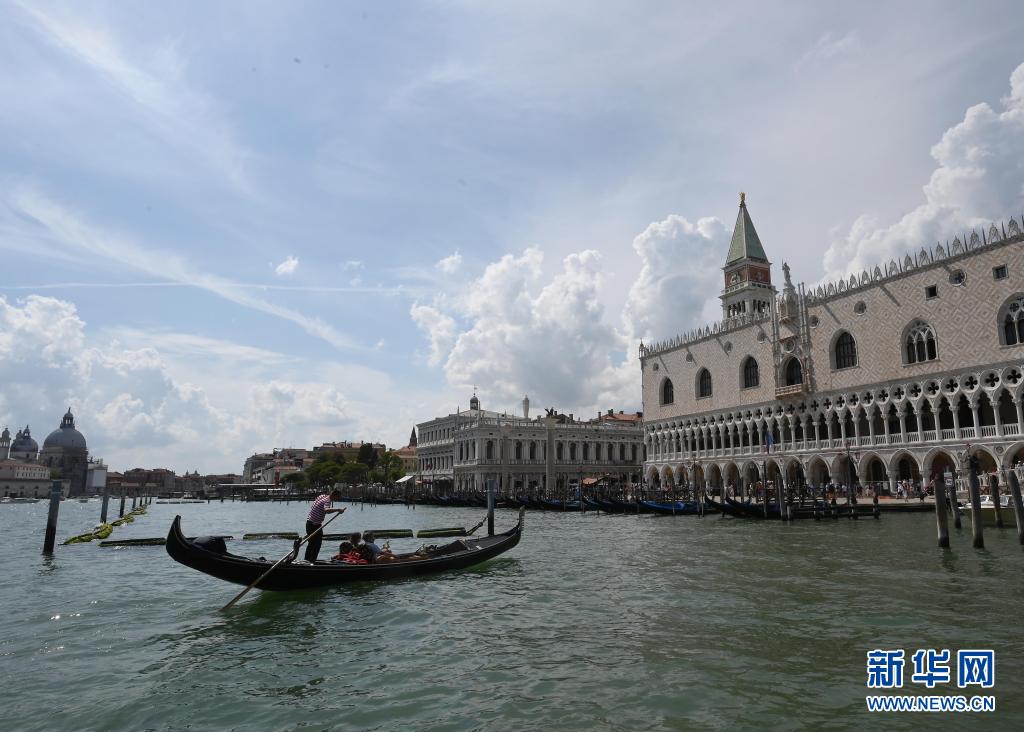 8月3日,游客乘坐“贡多拉”船游览意大利威尼斯。