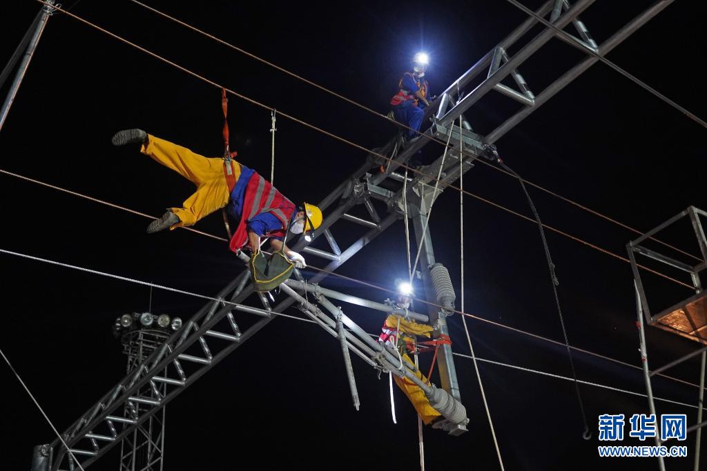 8月3日晚,中铁四局施工人员在进行拨接施工。