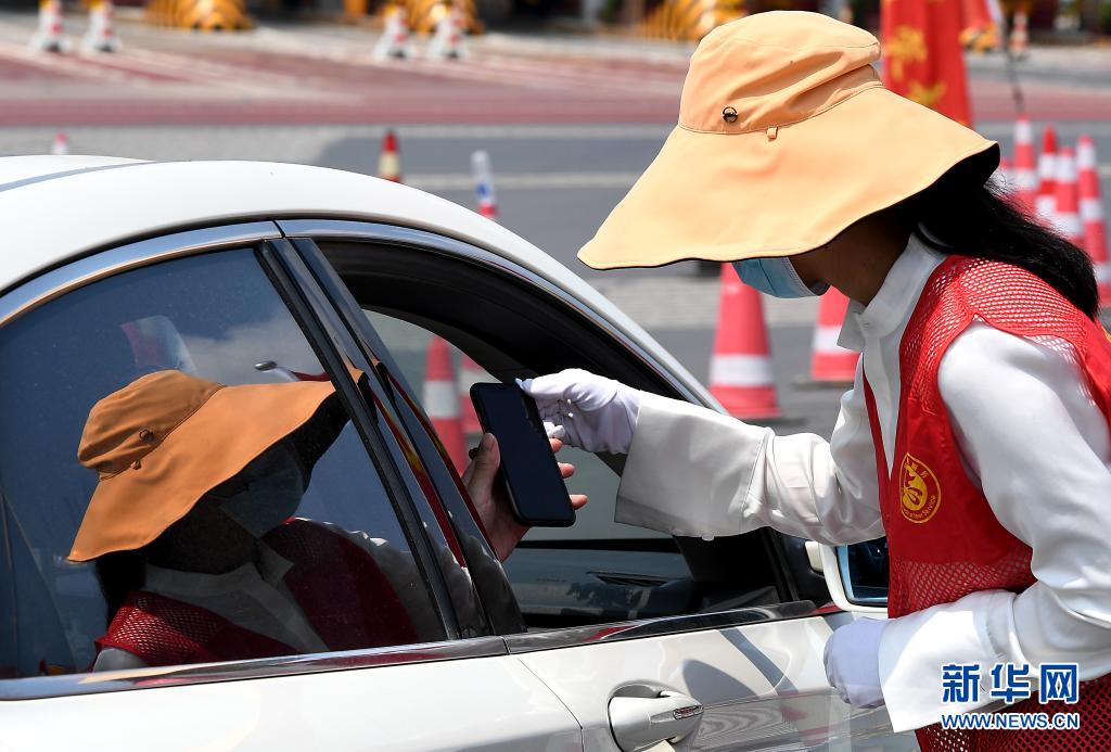 8月3日,在郑州市一处高速口,志愿者在查验市民的核酸检测结果。新华社记者李安摄