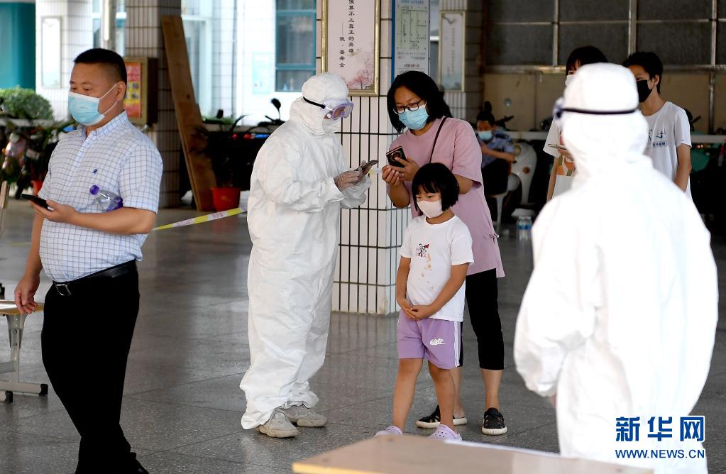 8月2日,在郑州市金水区的一个核酸检测点,工作人员扫描市民的核酸检测登记码。新华社记者李安摄