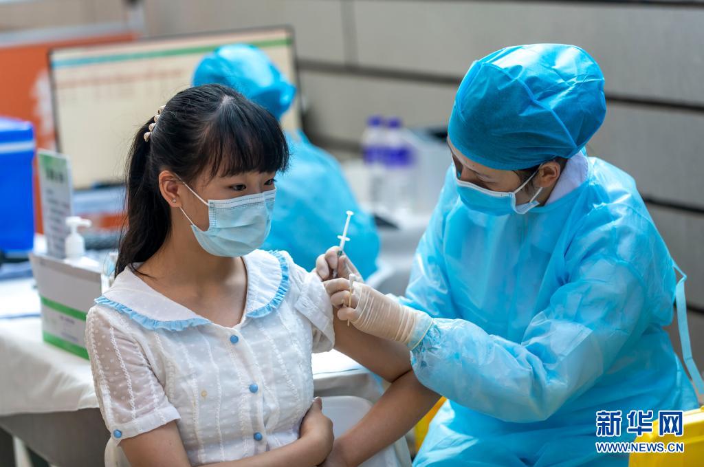 8月4日,一名学生在昆明市体育馆新冠疫苗接种点内接种新冠疫苗。新华社记者 陈欣波 摄