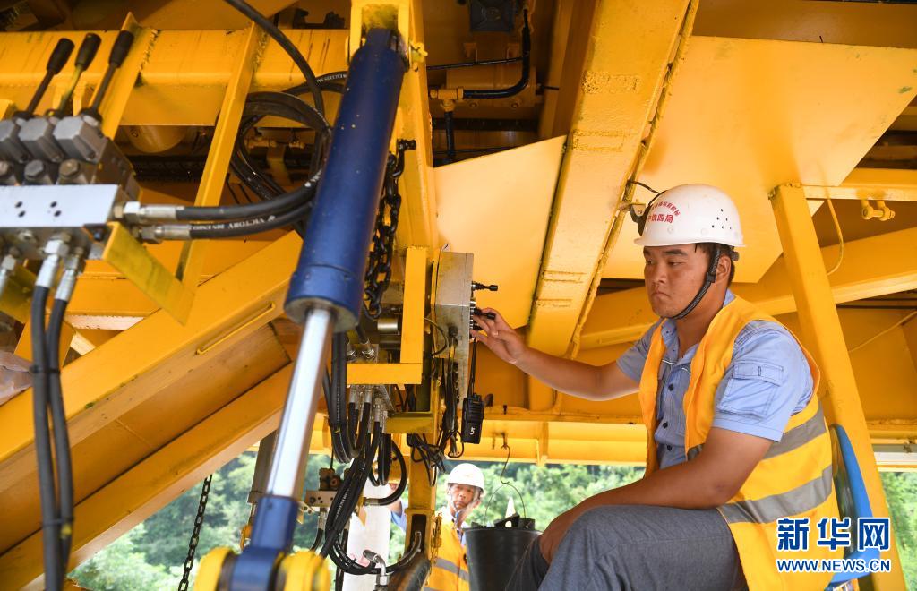 在广西扶绥县渠黎镇,中铁四局工人在进行铺轨施工(7月30日摄)。新华社记者 陆波岸 摄