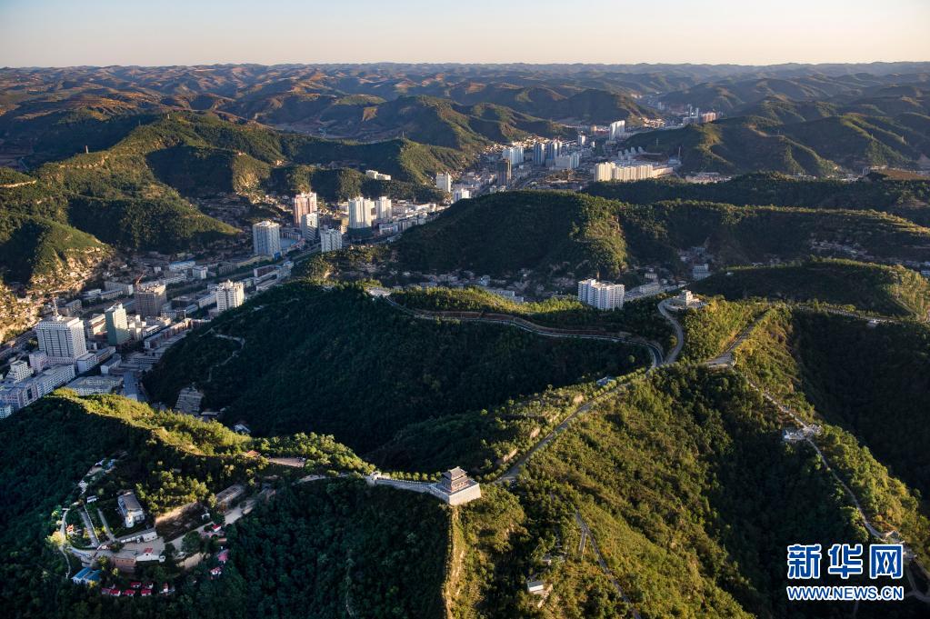 航拍陕西省延安市凤凰山景色(2010年10月2日摄)。