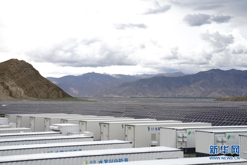 在日喀则市江当现代生态产业示范园,一排排光伏板整齐排列(7月15日摄)。