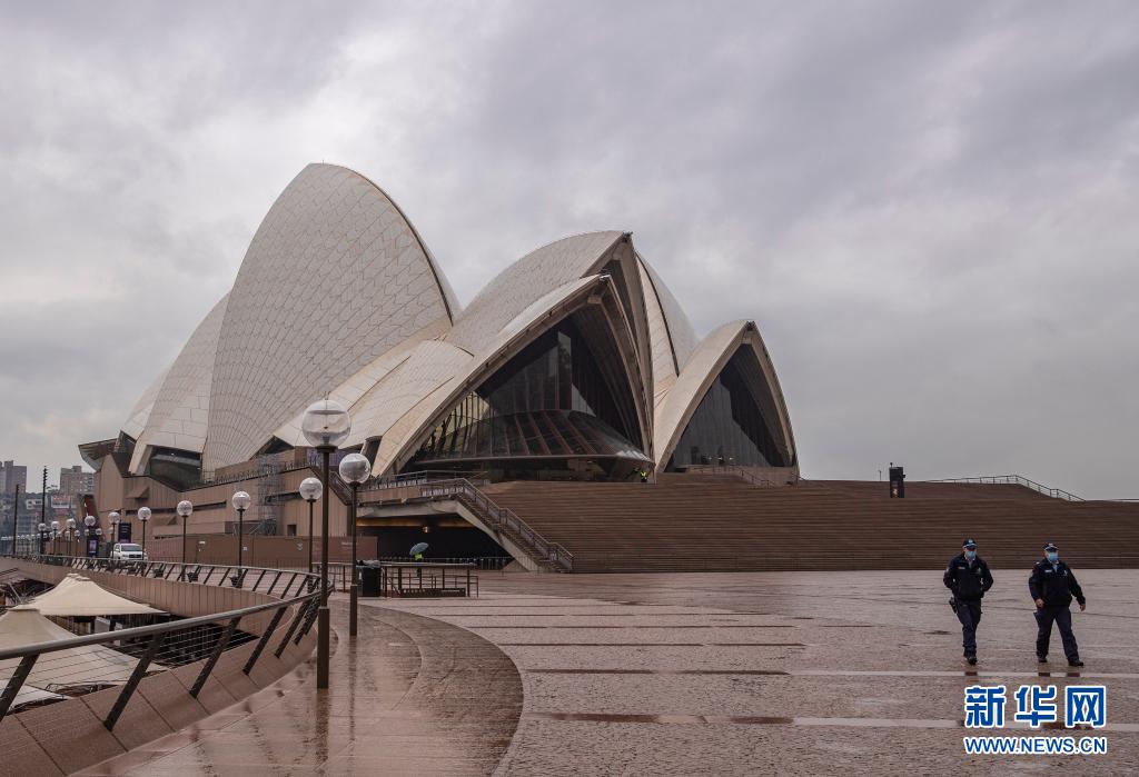 7月9日,两名警察在澳大利亚悉尼歌剧院前的广场上巡逻。