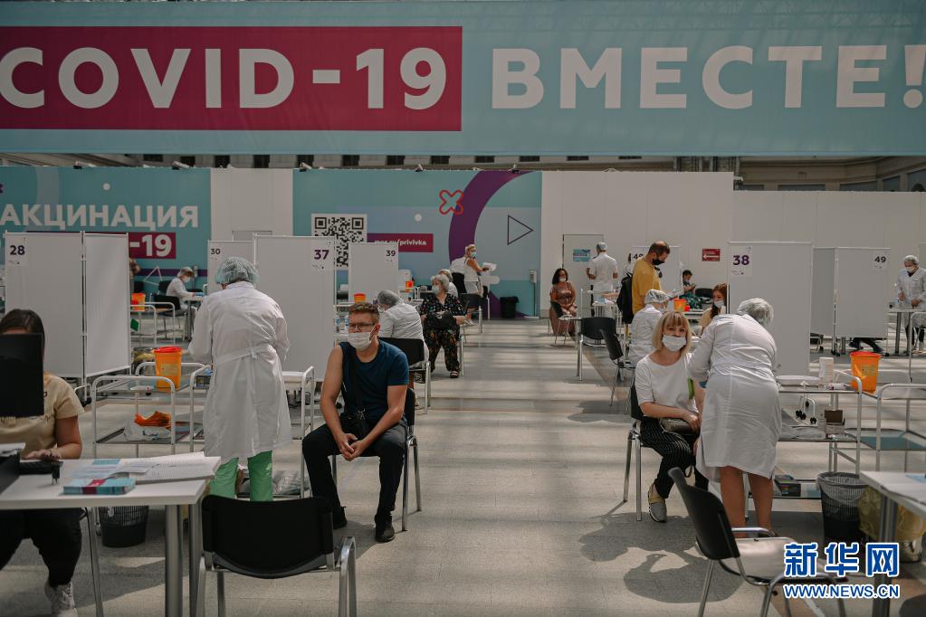 8月4日,人们在俄罗斯首都莫斯科红场附近的一个新冠疫苗接种中心接种疫苗。