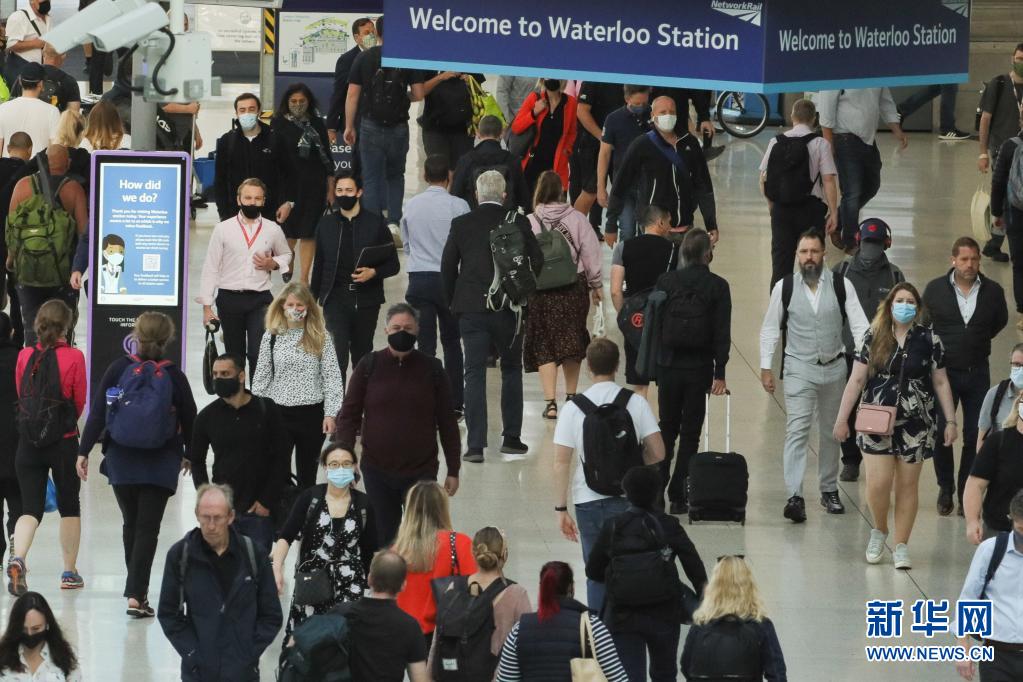 8月5日,乘客走在英国伦敦的滑铁卢火车站内。