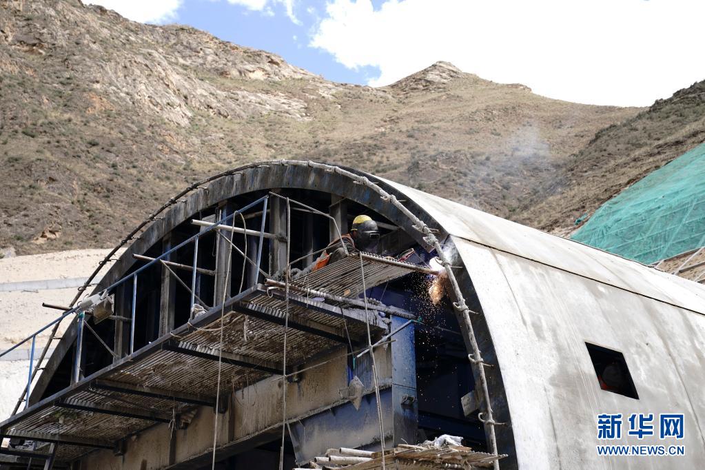 在拉萨市忠材山隧道,工人在隧道洞口作业(6月26日摄)。