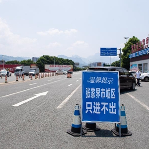 这是8月4日在张家界高速出口处拍摄的“张家界市城区只进不出”告示。