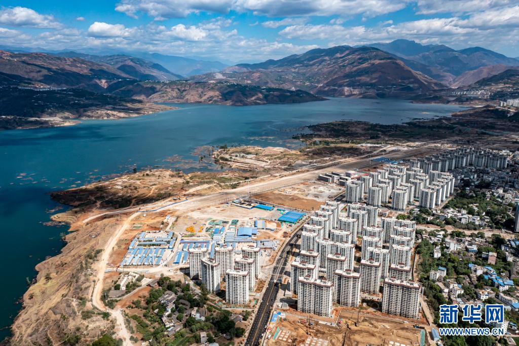 这是白鹤滩水电站库区以及移民搬迁点(5月15日摄,无人机照片)。