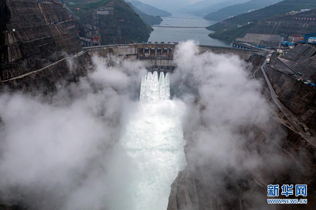 投产发电中的白鹤滩水电站(无人机照片,7月1日摄)。