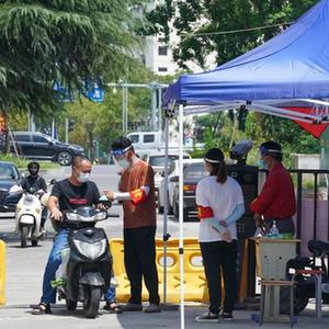 8月6日,在扬州市广陵区文峰街道三里桥社区,社区人员在为一位居民送生活用品。新华社记者 李博 摄
