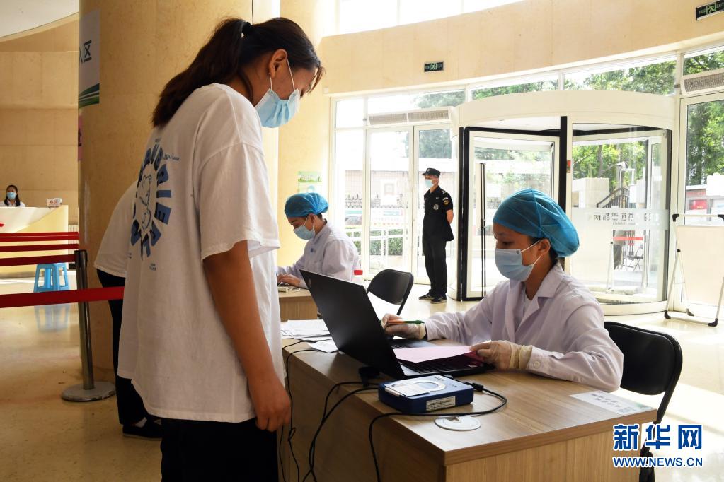8月6日,在北京市海淀区学院路街道新冠疫苗接种点,医护人员为一名未成年人登记信息。新华社记者 任超 摄