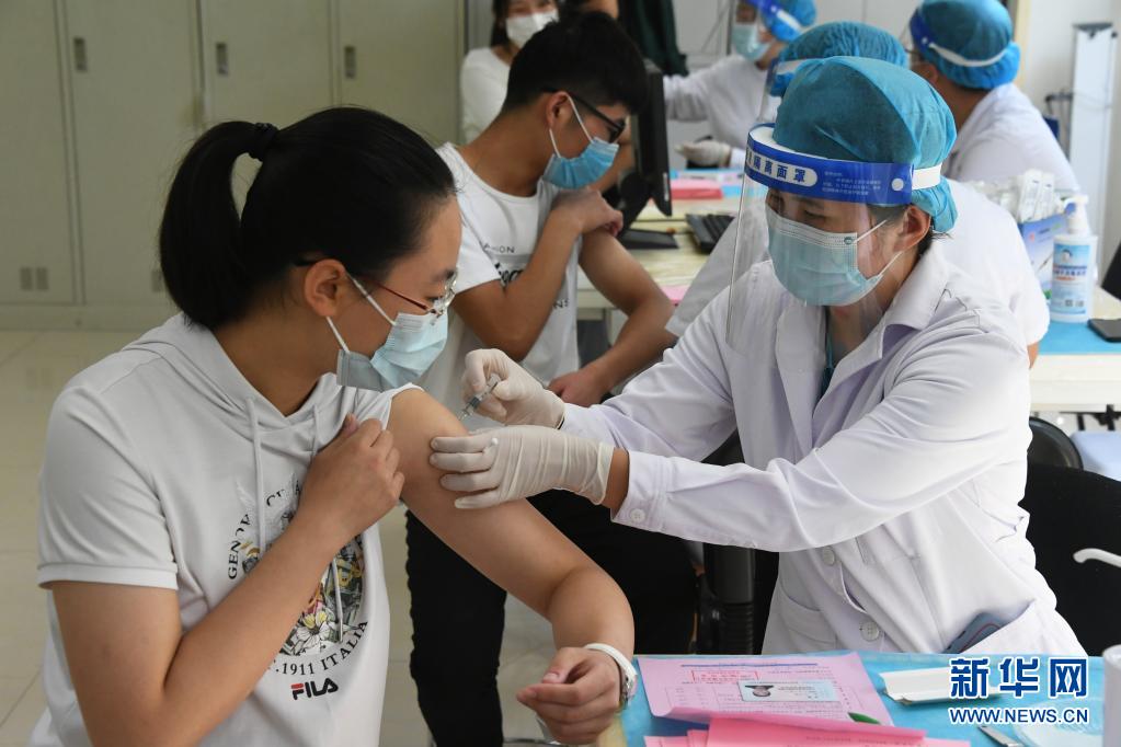 8月6日,在北京市海淀区学院路街道新冠疫苗接种点,医护人员为未成年人进行新冠疫苗接种。新华社记者 任超 摄