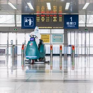 8月6日,工作人员在扬州站候车大厅内进行清洁、消毒工作。