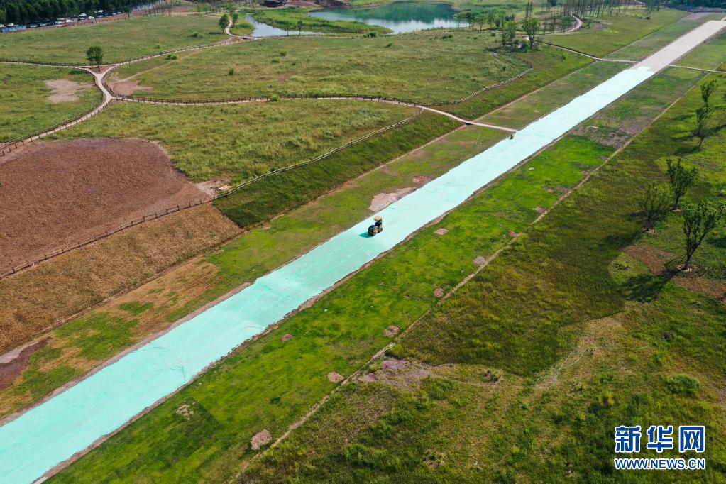这是8月6日拍摄的重庆广阳岛生态修复二期项目施工作业现场(无人机照片)。