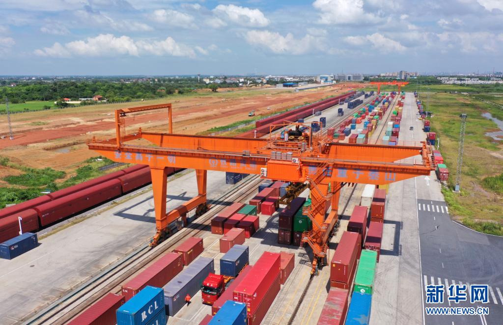 8月6日拍摄的江西南昌县向塘铁路物流基地(无人机照片)。