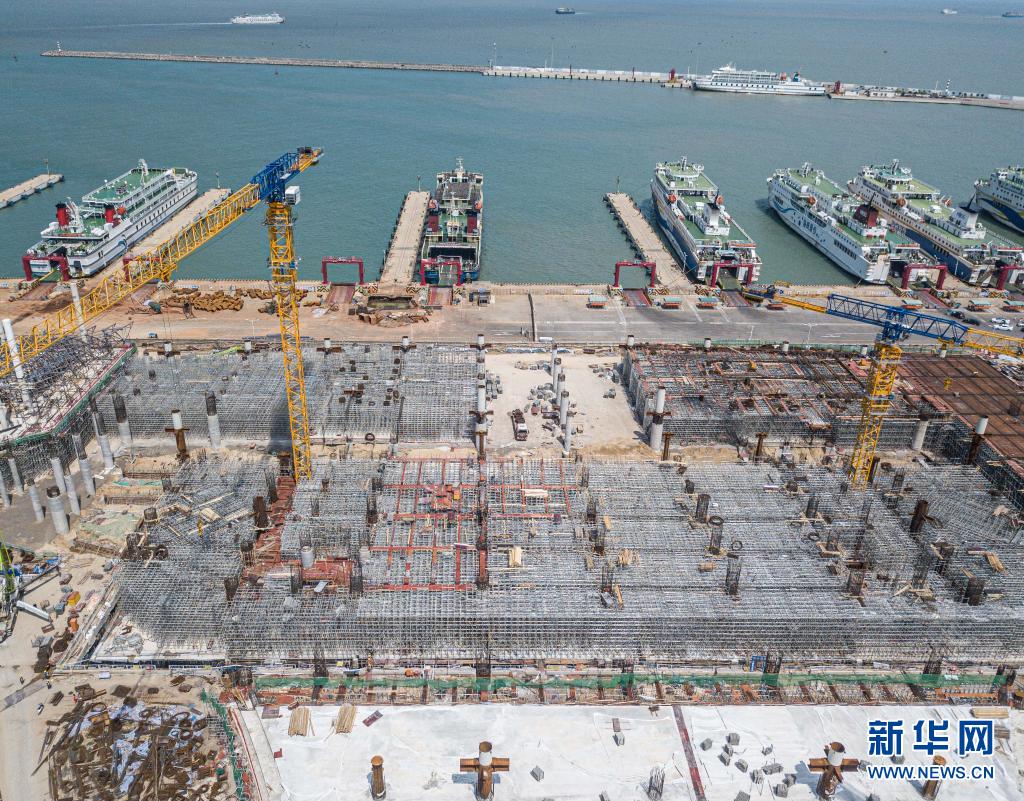 近日,海口新海码头客运综合枢纽站工程正加紧施工。目前,该工程中心区在进行楼承板施工,集散区、南北指廊在进行屋面网架拼装。该工程完工后,将进一步提高新海港接待服务水平,增强港口口岸监管能力,带动新海港片区发展。