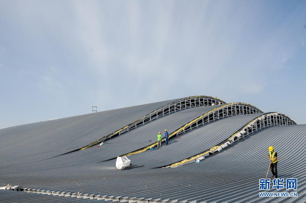 这是8月7日拍摄的喀什机场改扩建工程施工现场。新华社记者 高晗 摄