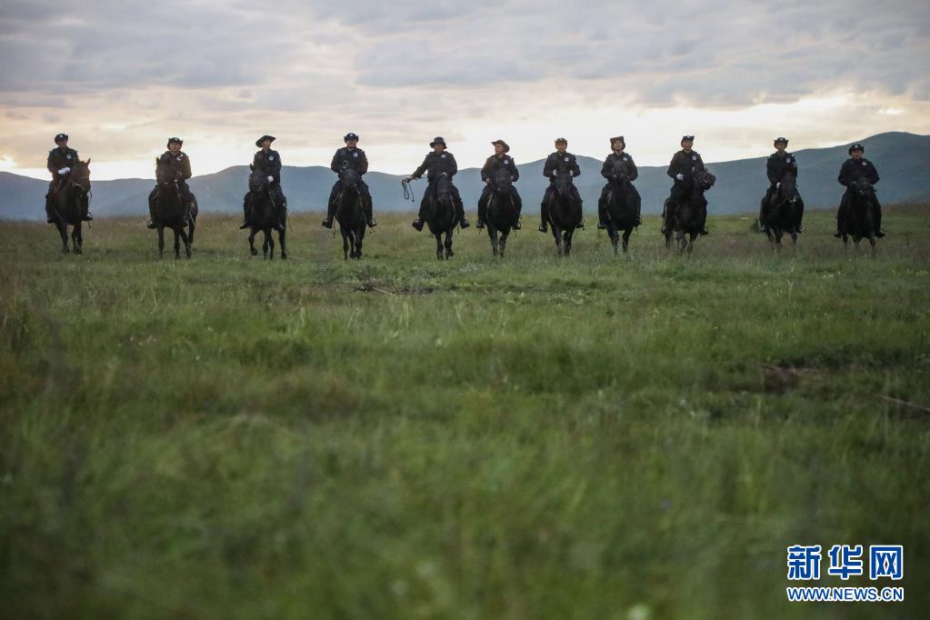 8月3日,甘肃省玛曲县公安局草原骑警大队队员在草原上巡逻。