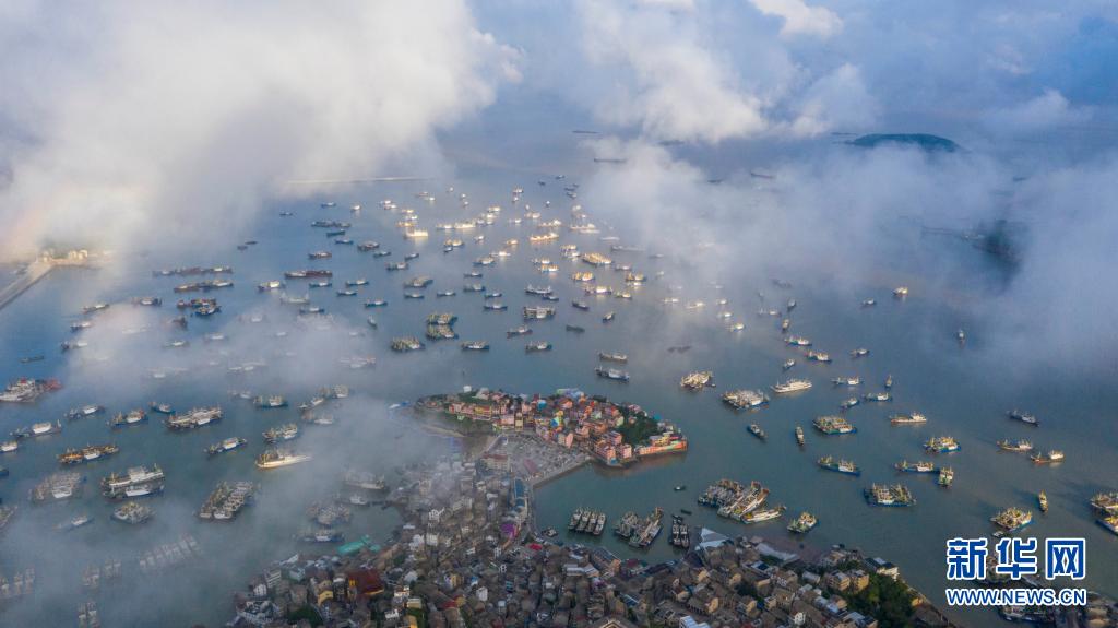 8月1日,在浙江温岭箬山渔港,渔船准备出海作业(无人机照片)。