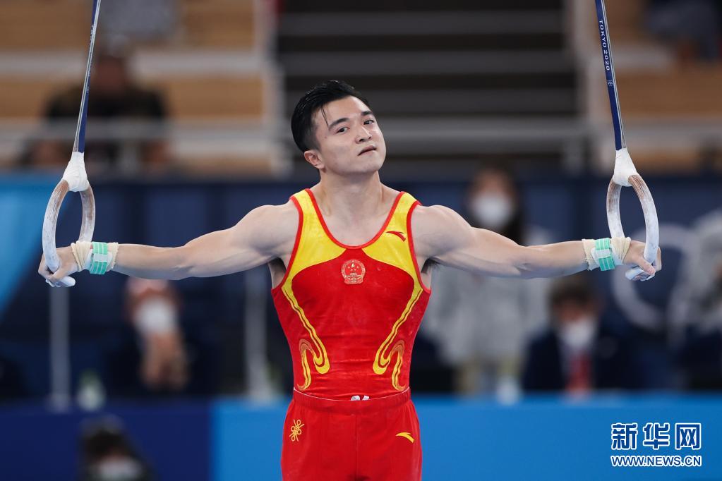 8月2日,中国刘洋在东京奥运会体操男子吊环决赛中。新华社记者 郑焕松 摄