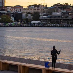 8月10日,在澳大利亚悉尼,一位工作人员清洁歌剧院前广场。