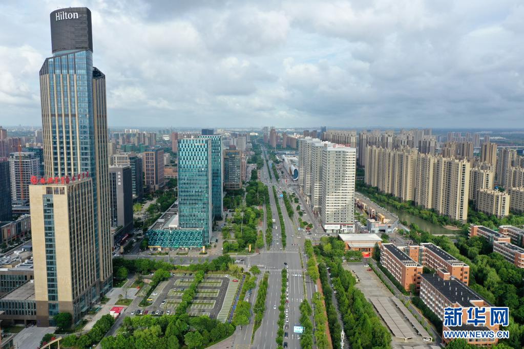这是嘉兴城区风貌(8月3日摄,无人机照片)。