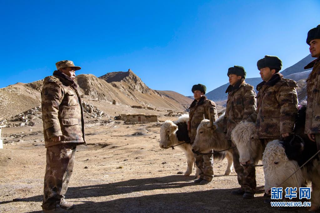 巡边队员出发前,新疆生产建设兵团三师叶城二牧场三连党支部书记刘前东(左一)叮嘱巡边重点、安全事项(2020年12月25日摄)。