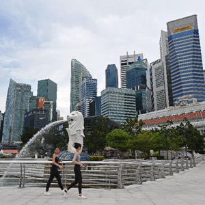 8月11日,人们经过新加坡鱼尾狮公园。