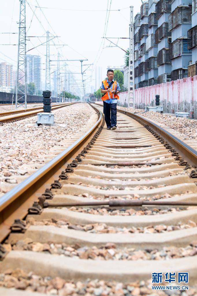 李宁是中国铁路太原局集团有限公司侯马北工务段运城线路车间的一名工长。上午11点,他和同事王大卫出发,将在一天里最热的时段,对高温炙烤的南同蒲线运城站铁路线进行徒步检查。10公里的铁路线,每次“巡热”大约需要5个小时左右,但李宁毫无怨言。他说,“巡热”就像给钢轨“看病”,目的是守护铁路运行安全。