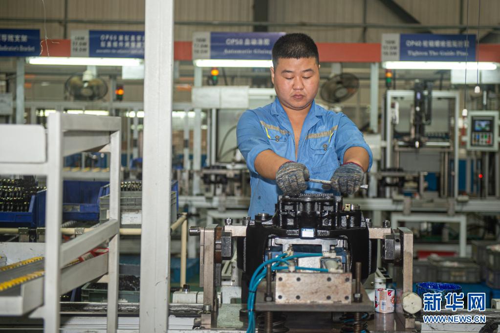 8月12日,在浙江万安科技股份有限公司,工人在生产线上工作。